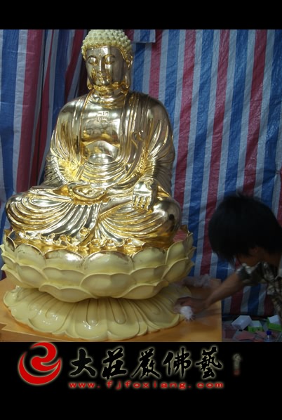 的另一种方法擦金工艺 擦金工艺需要金箔生漆或者金箔膏作为原料,擦金技术可以达到底表面的光滑度一样的效果,克服以往贴金技术出现的问题(有接缝,颜色差别的难题),贴金时完成不了的技术难题都可以避免。一种特殊的传统工艺,擦金工艺对金箔的需求量比较多,制作的时候耗金量一般要多于贴金的30%的金箔。每个细节都可以达到镜面一样的效果,成色稳定,色泽饱满,擦金寿命比一般贴金寿命长达四到五倍,建议在工艺比较精湛的佛像作品上使用,具有很高的收藏价值。