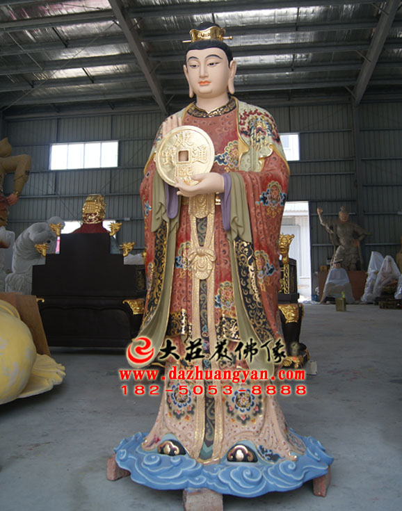 道教神像邓二,身份:道教神像,材质:黄铜,高度:站相220CM,重量:150公斤,表面工艺:彩绘描金,大庄严