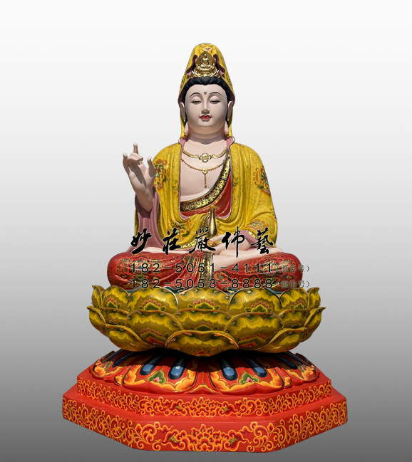 观音全称“观世音”,是梵文Avalokites'Vara的意译,又译作“光世音”、“观自在”、“观世自在”、“观音声”等,别名救世菩萨、莲花手菩萨、圆通大士等。“观世音”意思就是,世间一切遇难众生只要一心称念该菩萨名号,菩萨便会及时观其音声而前来相救。观世音菩萨是阿弥陀佛的左胁侍,也是“西方三圣”之一,在我国家喻户晓,老少皆知。古往今来流传“家家有弥陀,户户有观音”,足以说明我国群众尊崇供奉观世音菩萨的盛况及观世音菩萨在民间的深刻影响。根据《悲华经》记述,转轮王无诤念曾是阿弥陀佛转世,他有一千个儿子,观世音是他的长子,名为不眴。观世音出家后,在宝藏佛前发愿说,如有众生遭到各种苦恼恐怖,如果他可以忆念我,称念我的名号,即为其免除如此种种痛苦烦恼,宝藏佛即为他授记并命名观世音。