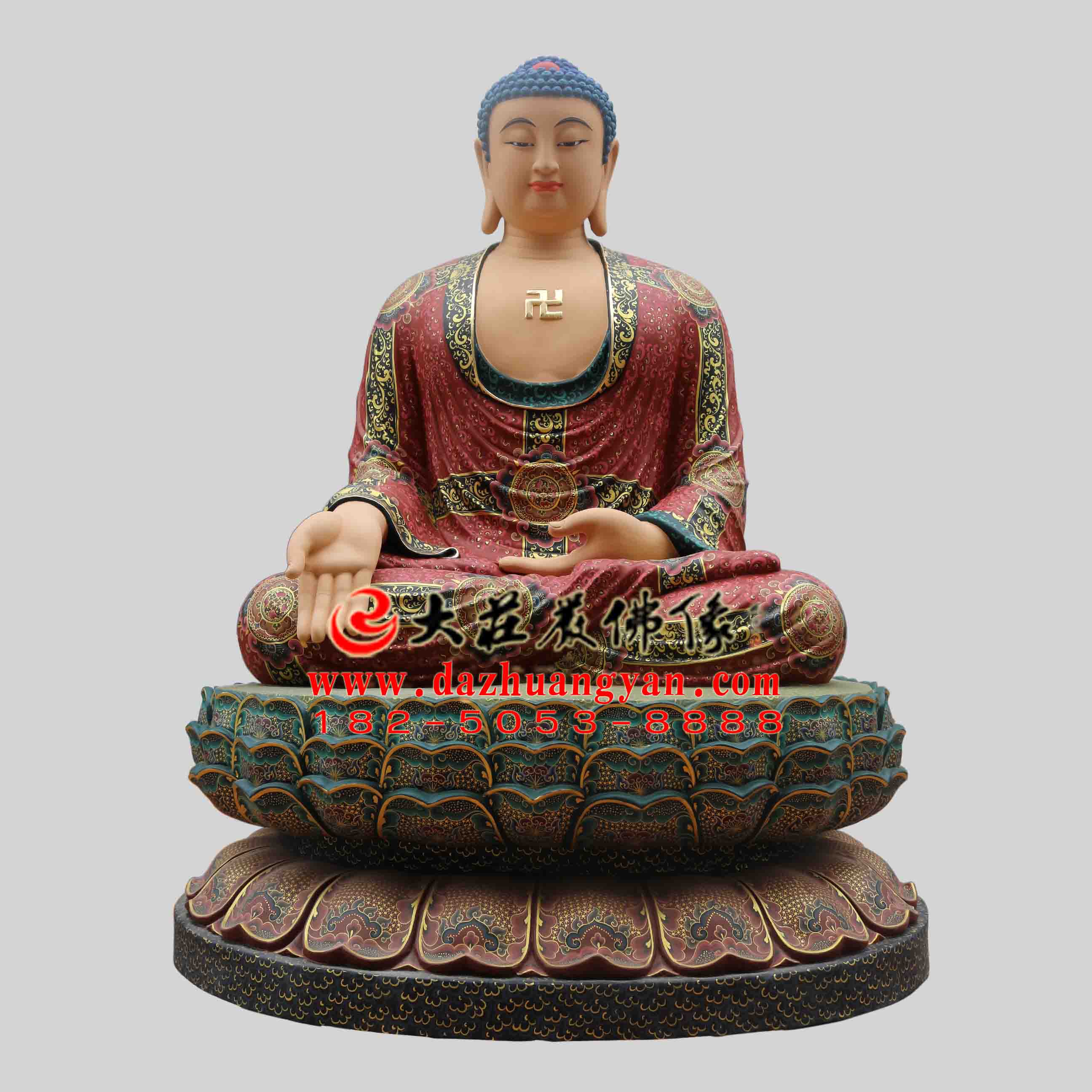 彩绘描金生漆脱胎阿弥陀佛坐莲佛像